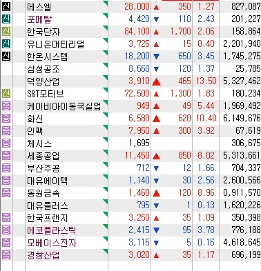 | 화신 | -자동차부품 -자동차 섀시 및 차체의 각종부품을 생산하여 납품하는 자동차부품 전문업체. -주요 제품으로는 차의 양쪽 WHEEL을 고정시켜주는 Arm류, ARM을 고정시켜주는 Member류, 차량의 후륜에 장착 되는 CTBA, 기타 Link류와 Press성형제품 등이 있음. -주요고객은 현대기아차그룹 자동차 관련 계열사임. -상승이슈 : 테슬라 S&P500 지수 편입 기대감 지속 속 페달 등 부품 납품 사실 부각/ |